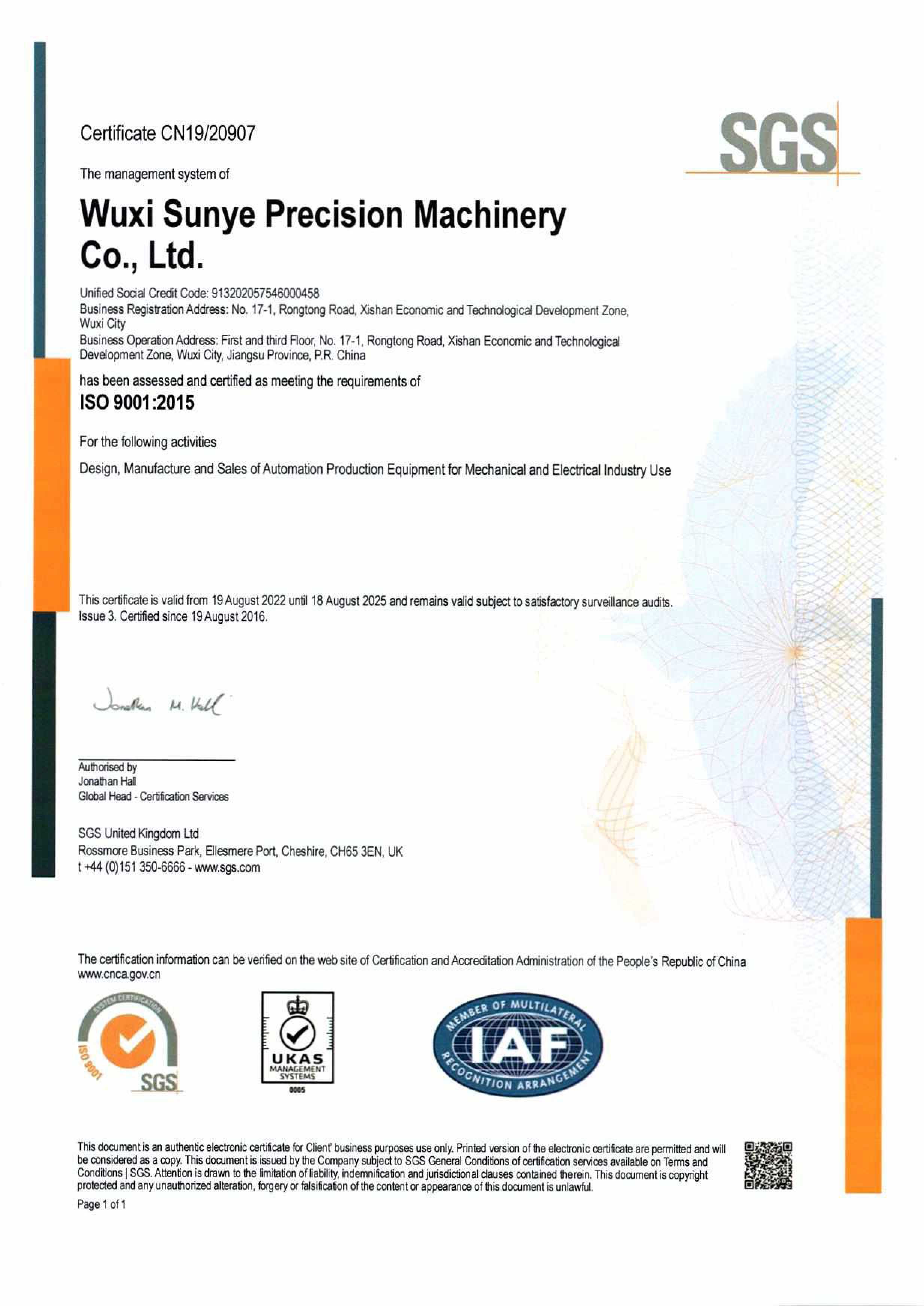 Sunye Precision Machinery attaches great importance to quality management, has passed SGS quality system certification ISO9001: 2015, TUV environmental system ISO14001: 2015, occupational health and safety management system ISO14001: 2015, energy management system IS050001: 2018, And intellectual property management system to provide customers with safe and high-quality products. At the same time, the company has been selected as a private science and technology enterprise in Jiangsu Province for many times, and won the title of "High-tech Enterprise" awarded by the People's Government of Jiangsu Province. In addition, Sunye Precision Machinery won the second prize of Science and Technology Progress of Zhejiang Province twice, won the title of Jiangsu Province specialized and special new enterprise, and was identified as the municipal enterprise technology center and the municipal engineering technology research center, and was identified as the municipal confidential pilot unit.